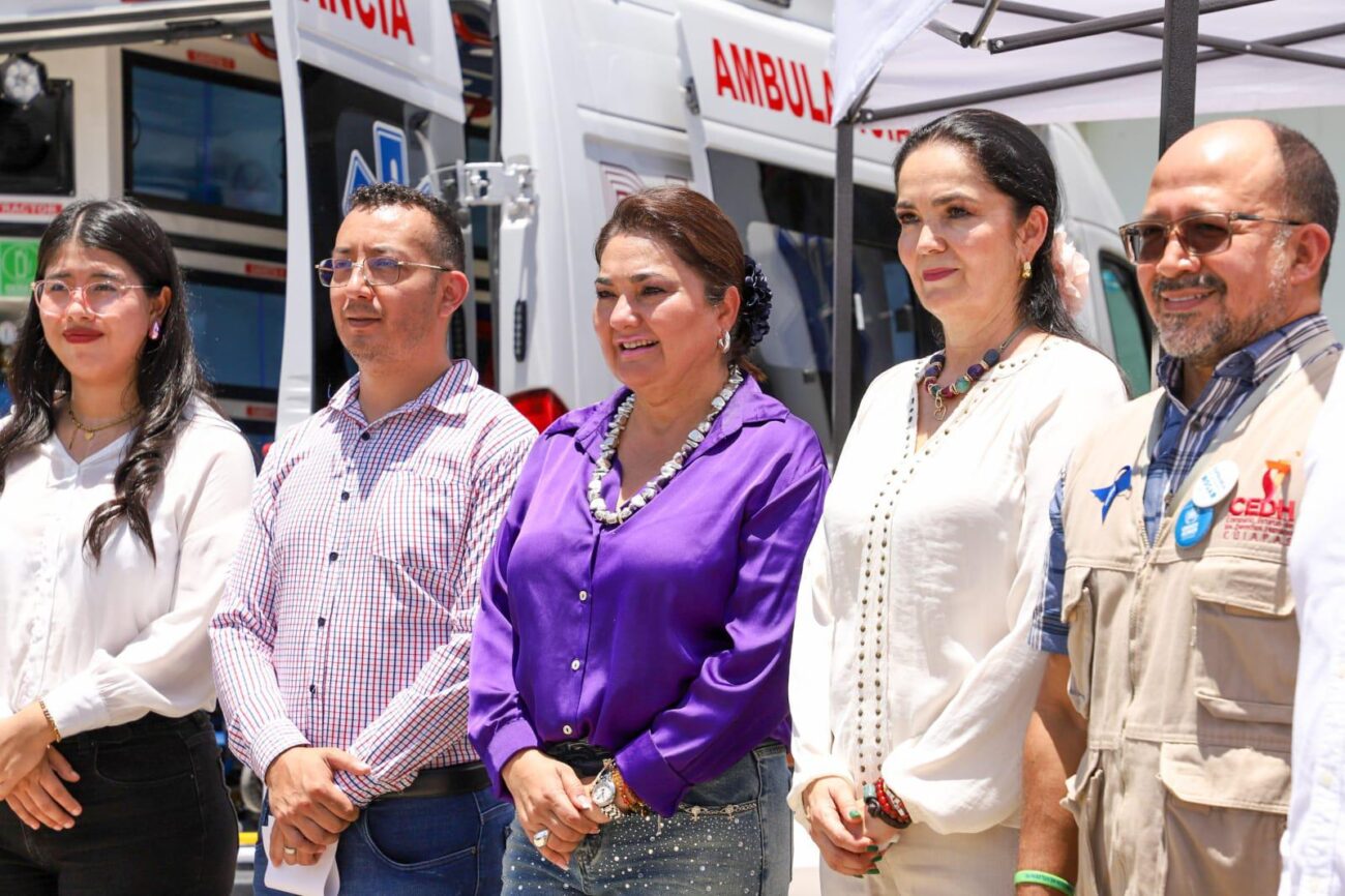 Al recibir la ambulancia, equipo de cómputo, comedores, insumos entre otros, la presidenta municipal de Tapachula Gladiola Soto Soto acompañada de la presidenta honoraria del SDIF Tapachula, Nora Raquel Soto Soto, agradeció el apoyo del organismo federal que hizo la entrega como parte del modelo Círculo de Protección en Centros de Atención a Niñez Migrante, que busca fortalecer la protección y restitución de los derechos de niñas, niños y adolescentes en contexto de movilidad humana en su paso por México.